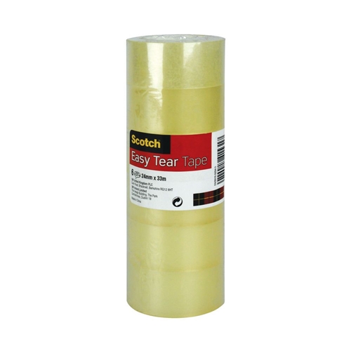 Scotch Easy Tear Tape is designed for everyday use. Great for making quick and strong repairs to torn paper, sealing packages or attaching labels. The clear tape is almost invisible in use for an attractive finish, and can be torn easily by hand for quick application. The 24mm wide tape is supplied on 33m rolls. This pack contains 6 rolls of tape.