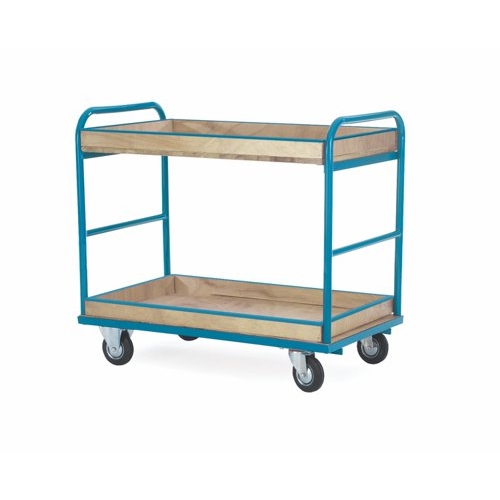 Shelf Truck; 2 Shelf with 60mm Lip Surround; Fixed/Swivel (x2 Braked) Castors; Steel; 250kg; Blue/Veneer