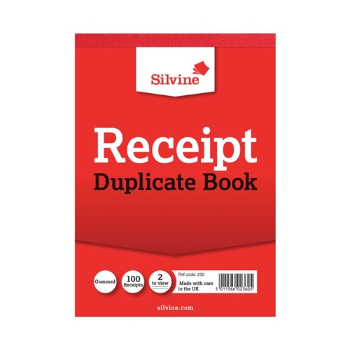 Silvine Duplicate Receipt Book 105x148mm Gummed (12 Pack) 230