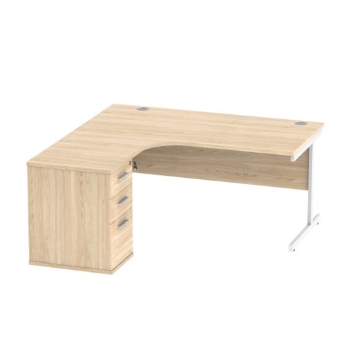 Single Upright Left Hand Radial Desk + Desk High Pedestal 1600X1200 Canadian Oak/White