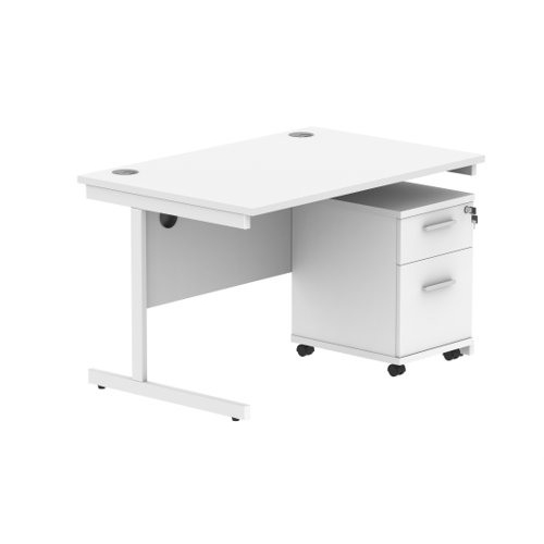Single Upright Rectangular Desk + 2 Drawer Mobile Under Desk Pedestal 1200X800 Arctic White/White