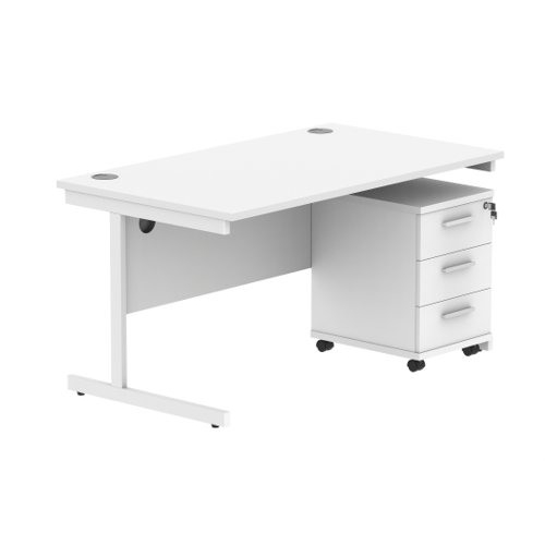 Single Upright Rectangular Desk + 3 Drawer Mobile Under Desk Pedestal 1400X800 Arctic White/White