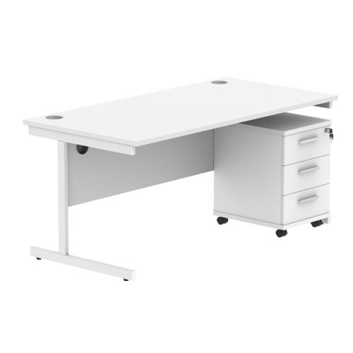 Single Upright Rectangular Desk + 3 Drawer Mobile Under Desk Pedestal 1600X800 Arctic White/White