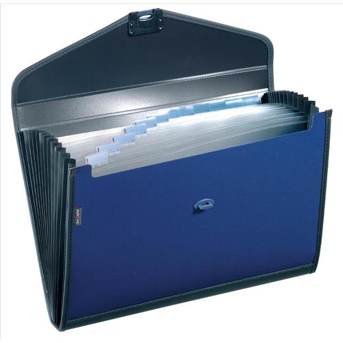 Snopake Expanding Organiser File Polypropylene 13 Part Foolscap Blue and Black Ref 13521
