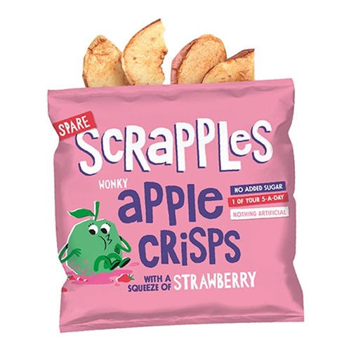 Award winning kids crunchy apple crisps with a squeeze of strawberry, made from wonky apples