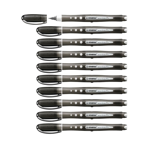 • STABILO worker+ Colorful Rollerball Pen 0.5mm Line Black (Pack 10) - 2019/46