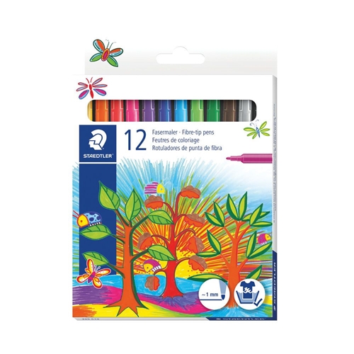 Staedtler Noris fibre tip pens are ideal for adding a splash of colour to artistic work. The tip writes a 1.0mm line for a precise and controlled stroke. Incorporating a ventilated cap with a breathing channel for extra safety, the ink is water-based and can be easily washed out from most textiles. This pack contains 10 packs of 12 assorted ink colours of Yellow, Orange, Red, Lime Carmine, Violet, Magenta, Blue, Light Blue, Green, Willow Green, Brown, Light Grey, Black.