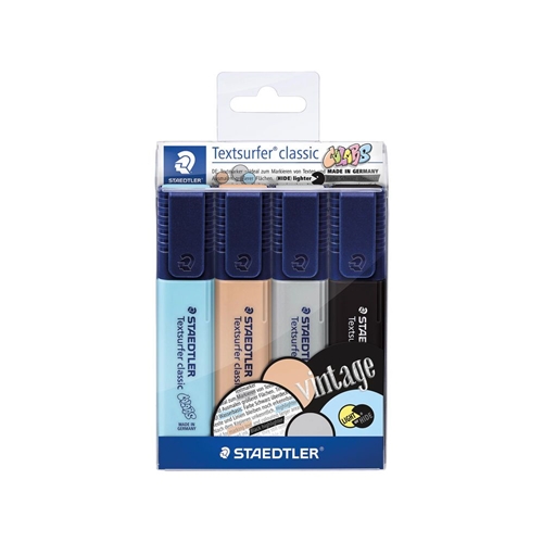 Ideal for marking text and colouring larger areas, these Staedtler Textsurfer Classic Highlighters come in assorted Vintage colours. Each pen includes a large ink reservoir for extra-long highlighting performance with water-based, fast-drying ink. The twist cap allows for easy opening with an ultra-soft chisel tip for a 1-5mm line width. The black highlighter covers up text and lines so that they are still legible on your page but illegible on photocopies, perfect for confidential documents and information.