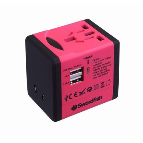 Swordfish VariPlug Dual USB Universal Travel Adaptor (Pink) Ref 40330