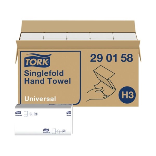 These hand towels are for use with the Tork H3 dispenser, for a hygienic and cost-effective single fold dispensing system. The quality, economical 1-ply single fold towels are easily dispensed and dry hands and other surfaces without risk of wasting them. This pack contains 15 sleeves of 300 hand towels which is ideal for storage.