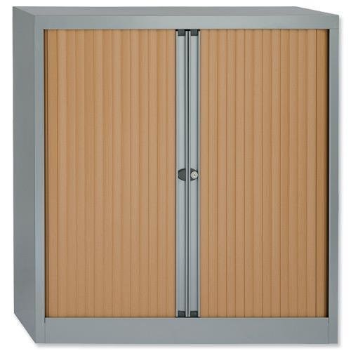 Trexus by Bisley Side Opening Tambour Cupboard inc 1Sh 1000x470x1000-1015mm Slv/Bch Ref WTB1010/1S.BC