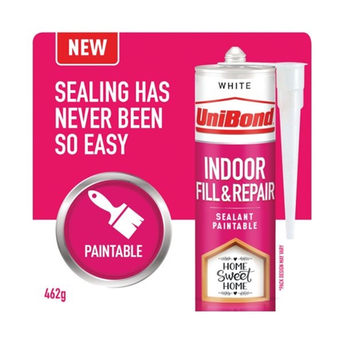 This durable Indoor Fill and Repair sealant transforms the look of wood, skirting boards, coving, dado rails, window and door frames in minutes. With a formula that makes sealing easy, UniBond Indoor Fill and Repair sealant sticks, smooths and cures fast and is ready to paint in 1 hour. Making indoor gaps and cracks disappear, the stretchy formula allows it to form perfect, lasting seals in corners.