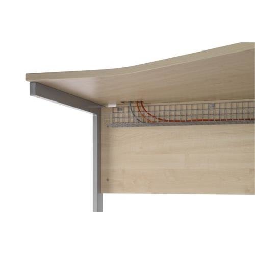 A sturdy steel mesh basket ensures cables are kept safely out of the way. Designed to fit under a desktop.