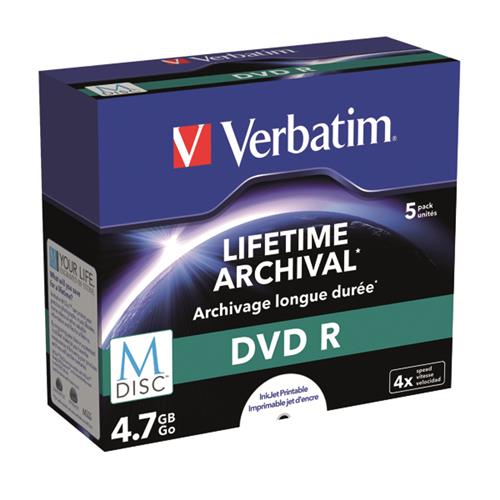 Verbatim M-Disc DVD R 4.7 GB 4x Printable Jewel Case (5 Pack) 43821