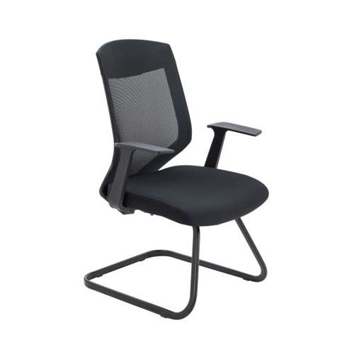 • A black mid back mesh visitor chair with cantilever base