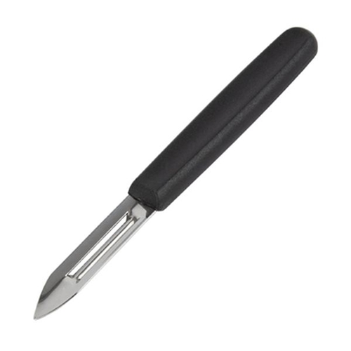 Traditional rugged vegetable and potato peeler with handle and double sided blade.