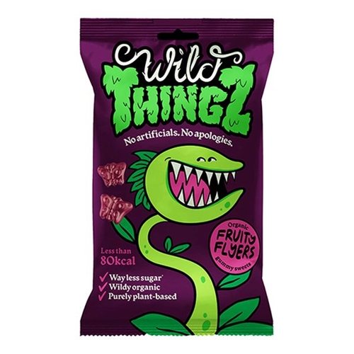 Wild Thingz organic, plant-based gummy sweets. Half the sugar of the big brands. No artificials. No apologies.Our Fruity Flyers contain a cutie fruity mix of Red Apple flavoured Butterflies, Orange flavoured Wasps, Blackcurrant flavoured Ladybirds Cherry and Green Apple flavoured Vee the Venus Fly Trap.No artificial colours, flavours or preservatives. We use pectin’s from fruits to give them their soft jelly consistency (never gelatine).It's wild that sweets are so artificial. We're not gonna stand by sweetly. Less junk. More punk. Welcome to Wild Thingz. Join the wild side…. follow us at @wildthingz.co or look us up www.wildthingz.co"