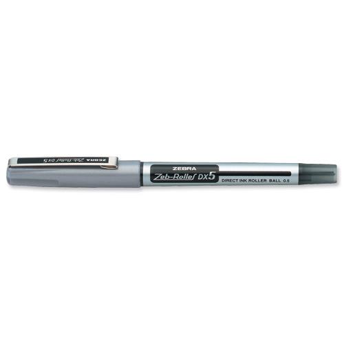 Zebra DX5 Rollerball Liquid Ink Pen Fine Needle Point Black Ref 16071 - Pack 10